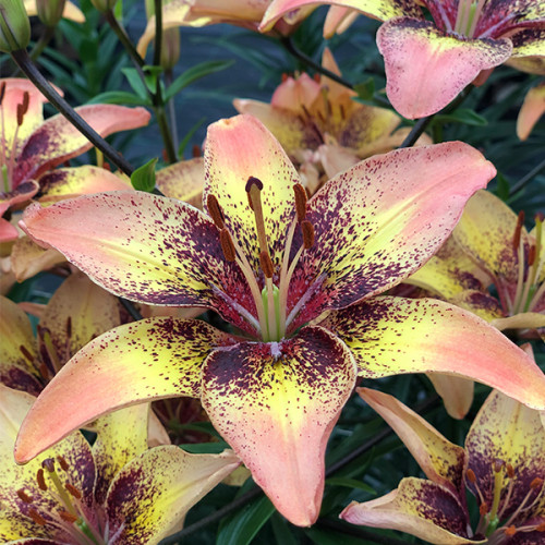 Tribal Dance - väga erilistes värvitoonides mitte lõhnav aasia liilia on küll sarnane sordile Fancy Dance, kuid erksamate roosade toonide asemel on hoopis mängus lõheroosad pehmed, isegi pruunikamad toonid. Õie keskosa kaunistavad loendamatud lillad täpikesed kollasel õiepõhjal. Kasvab kuni 100 cm kõrguseks, õitseb juulikuu keskpaigas, ei lõhna ja paljuneb hästi. Ühes pakis 3 sibulat. Ühe paki hind 4,20 eurot.